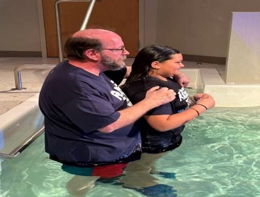 In 2022, during Vacation Bible School at Brookwood Baptist Church, my eleven-year-old granddaughter Audrey came to my wife and me saying that she had placed her faith in Jesus Christ. We were overjoyed with her and her decision. After about a year, we were finally able to get her into baptism class and on the schedule to follow Jesus in believer’s baptism. During the class, Audrey specifically asked that I be the one to do the baptism. With the approval of Brookwood’s pastor, David Rice, I did. It was a tremendous moment for both of us.